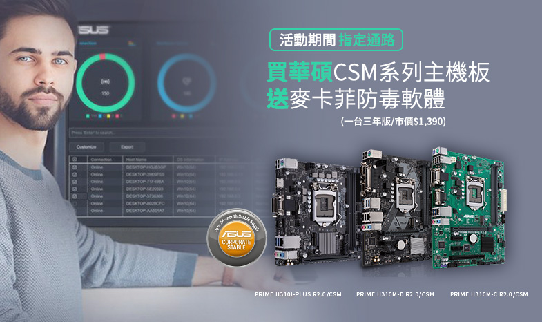 ASUS Corporate Stable Model (CSM) 計畫的目的是提供穩定的主機板和迷你電腦給世界各地的企業。