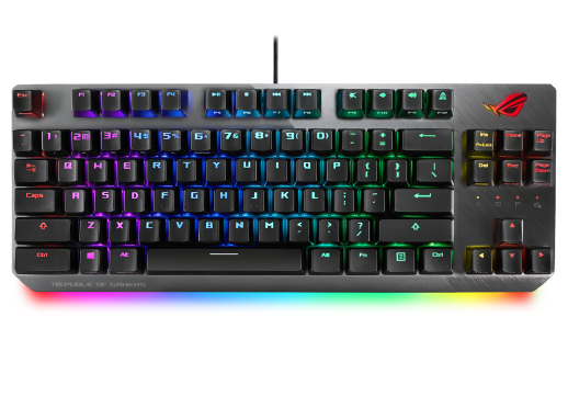 ROG Strix Scope NX TKL wired mechanical RGB gaming keyboard for FPS games, with ROG NX switches, aluminum frame, and Aura Sync lighting.
