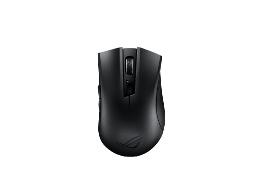 ROG Strix Carry ergonomic optical gaming mouse with dual 2.4GHz/Bluetooth wireless connectivity, 7200-dpi sensor, and ROG-exclusive switch socket design