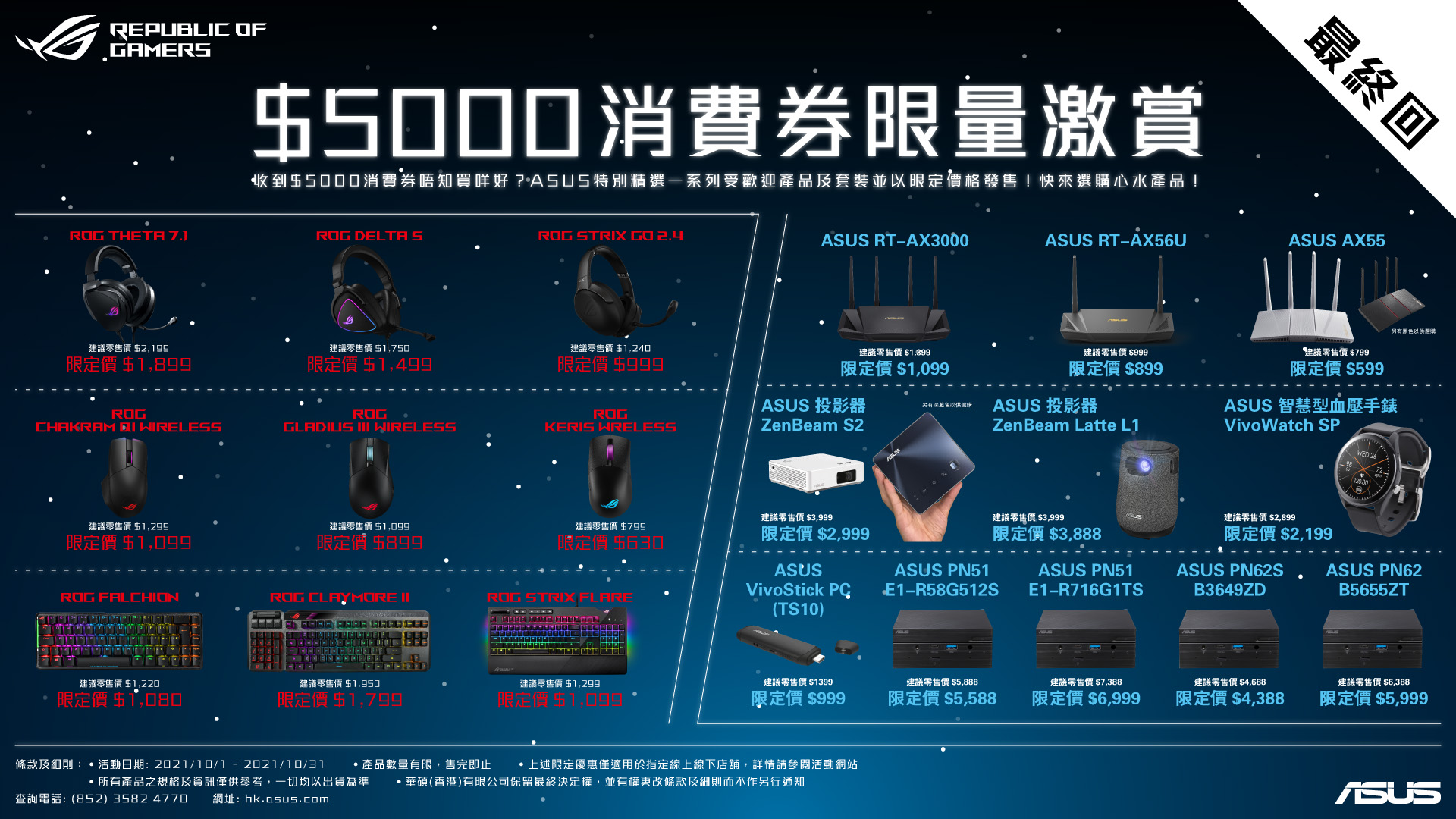 ASUS 精選系列 (無線路由器、迷你電腦、投影器及智慧型手錶)